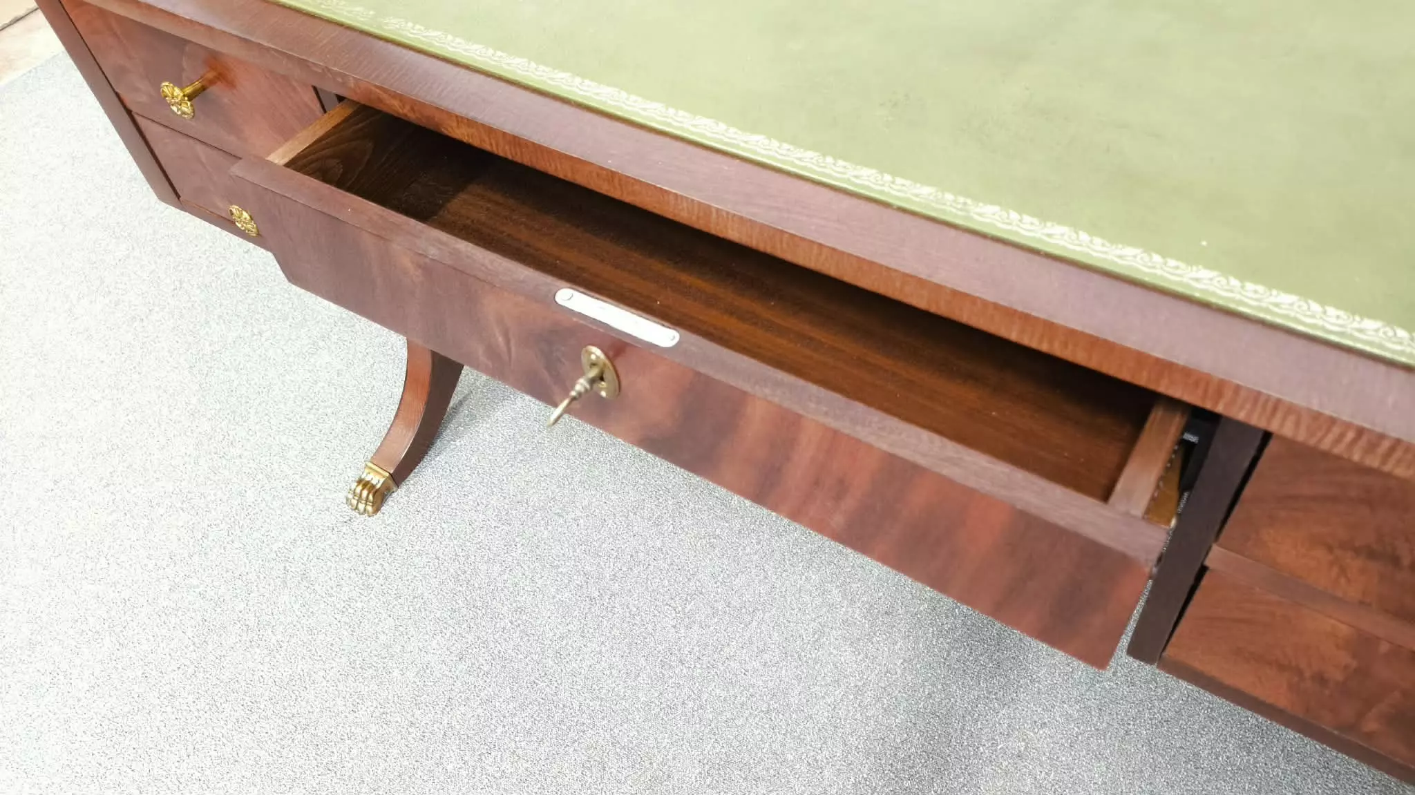 Biurka gabinetowe fornirowane mahoniem to klasyka stolarki meblowej. Ich wartość wynika nie tylko z formy, ale przede wszystkim z jakości materiału – odpowiednio dobranego i ułożonego forniru. W tym przypadku głównym celem renowacji było przywrócenie naturalnej głębi drewna oraz wykonanie niezbędnych napraw konstrukcyjnych.
